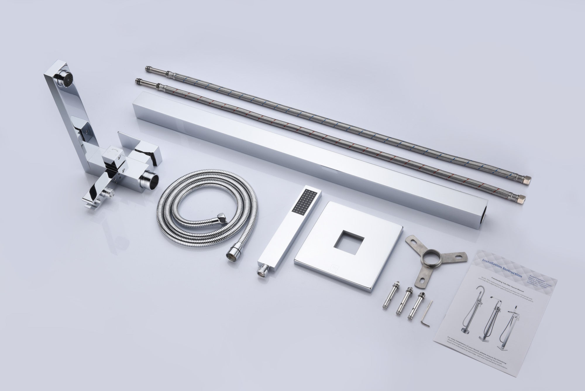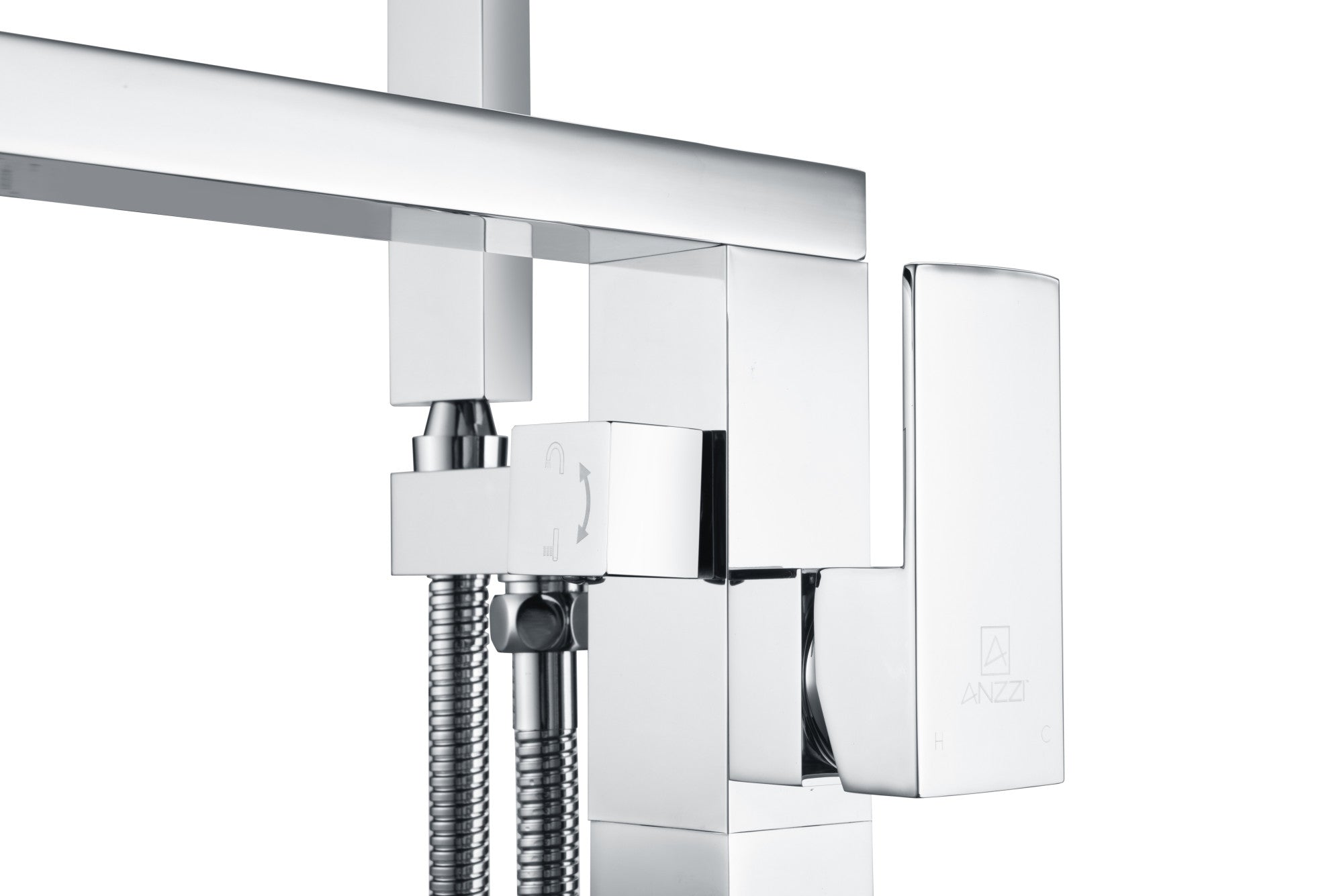ANZZI has brought art to life in the form of an elegantly crafted full sized freestanding and claw foot tub floor mounted faucet. The ANZZI Khone series features 2 handle control design, powerful tub filling spout and far reaching hand held sprayer. All this is suspended atop a floor mounted freestanding architecture in polished chrome which housing solid brass interior components. ANZZI freestanding faucets are crafted for looks and built for reliability.