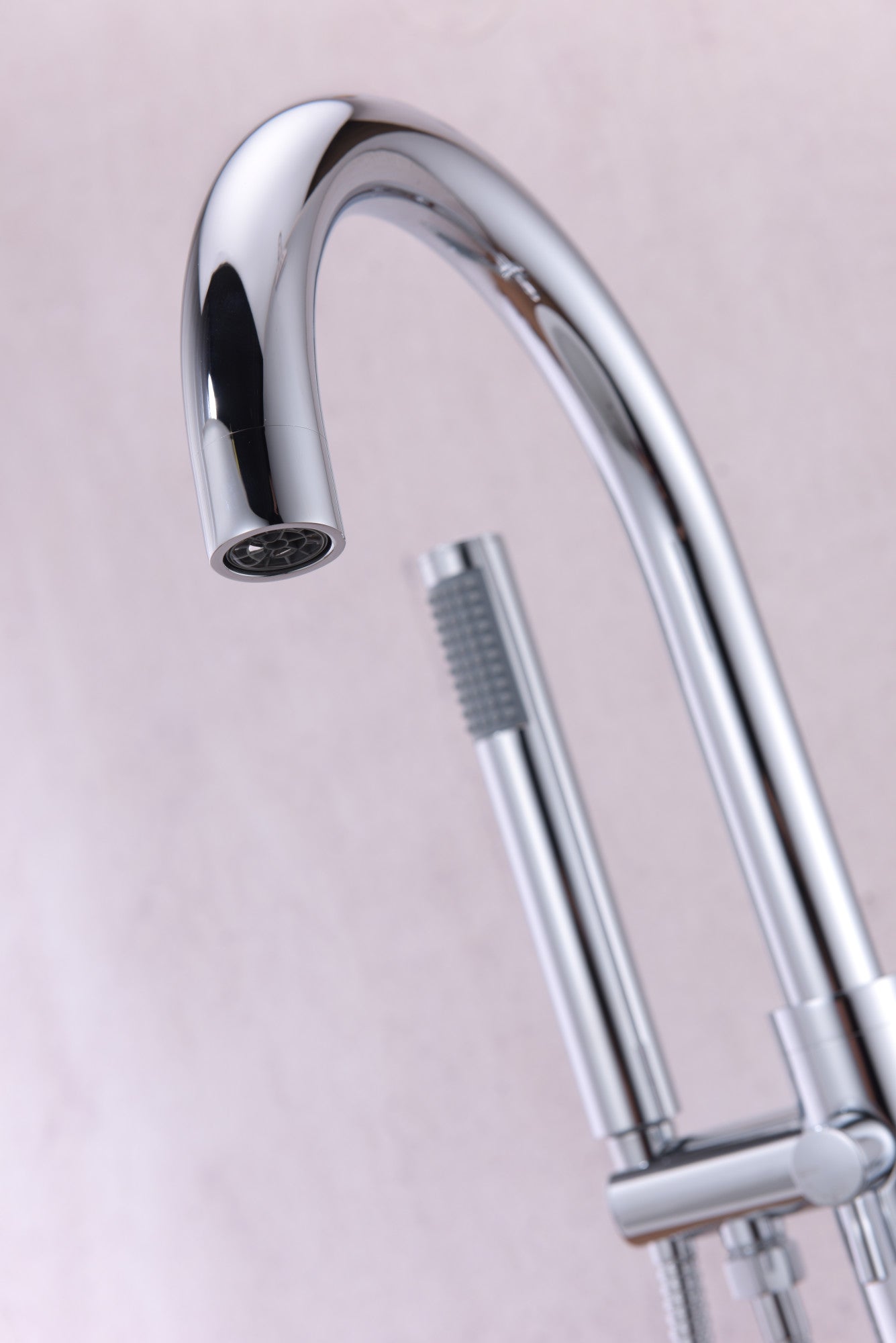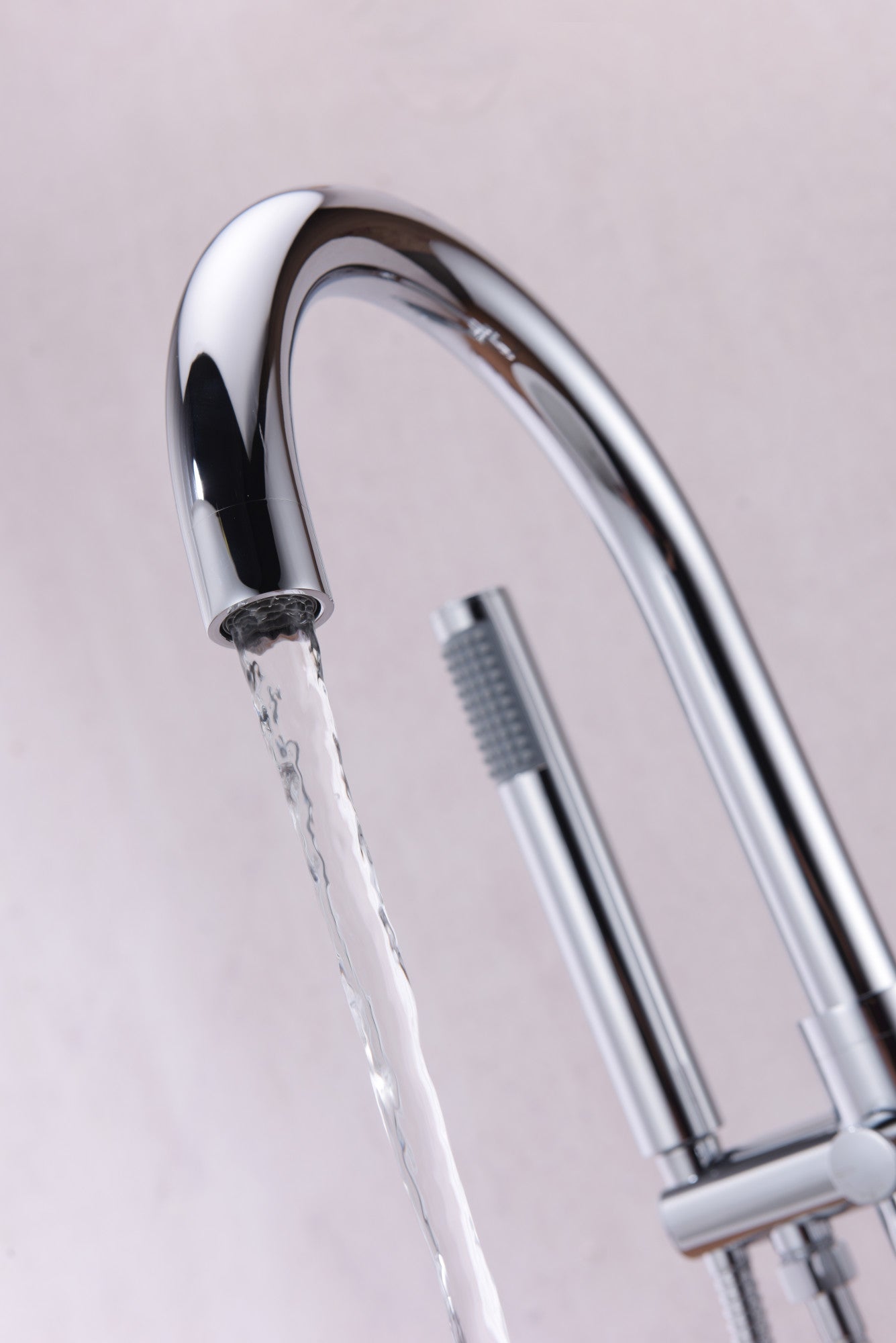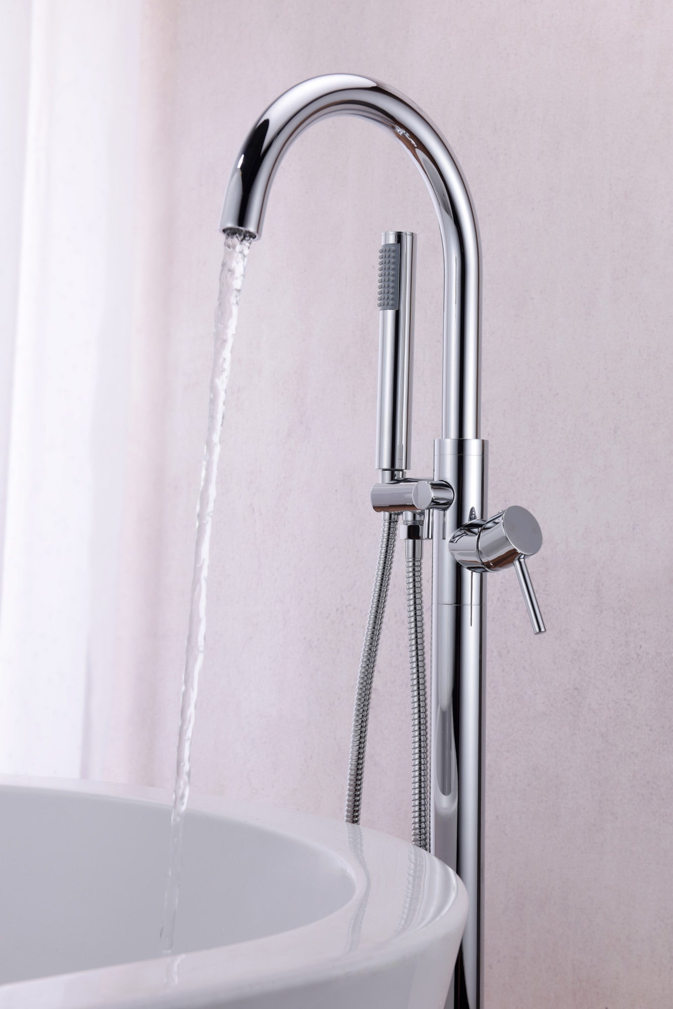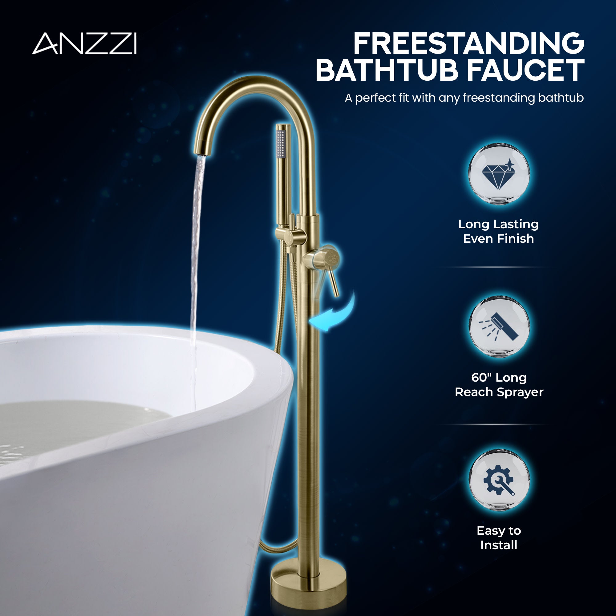 The ANZZI Coral Series 2-handle freestanding claw foot tub faucet with hand shower will add a classic appeal to any freestanding bathtub. Elegantly featuring a swan-like high arched spout, a single handle water lever (controls water temperature and flow), a diverter, and pull out hand sprayer. This floor mounted tub faucet is crafted for durability and is RHINO ALLOY certified.