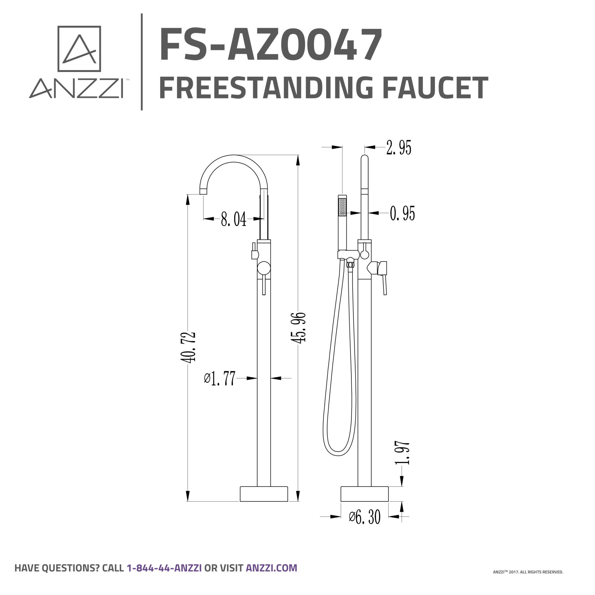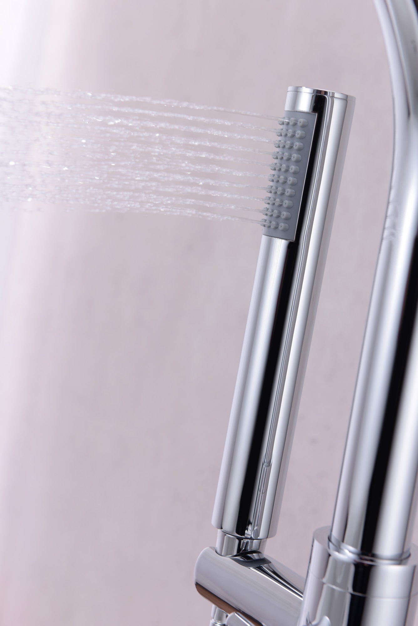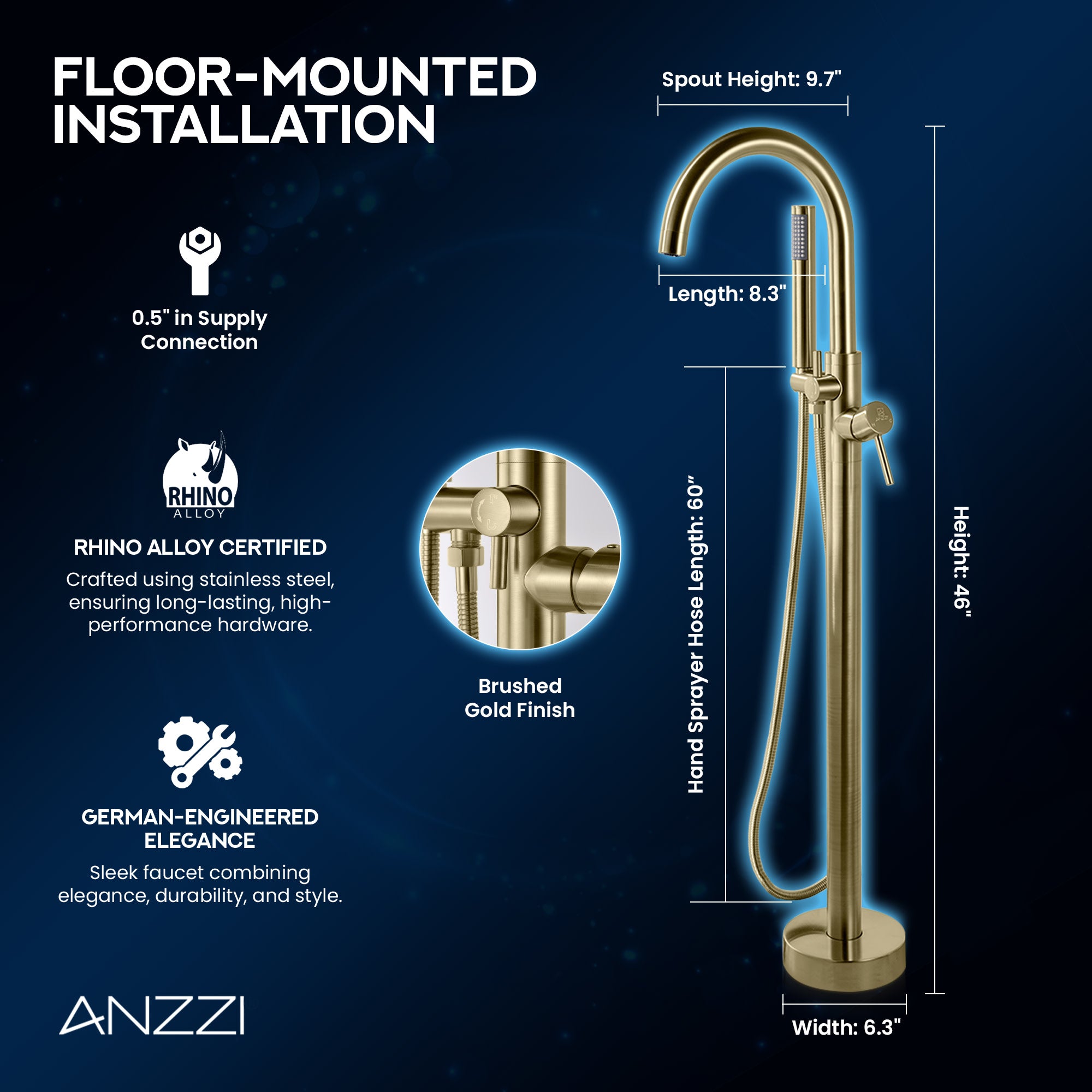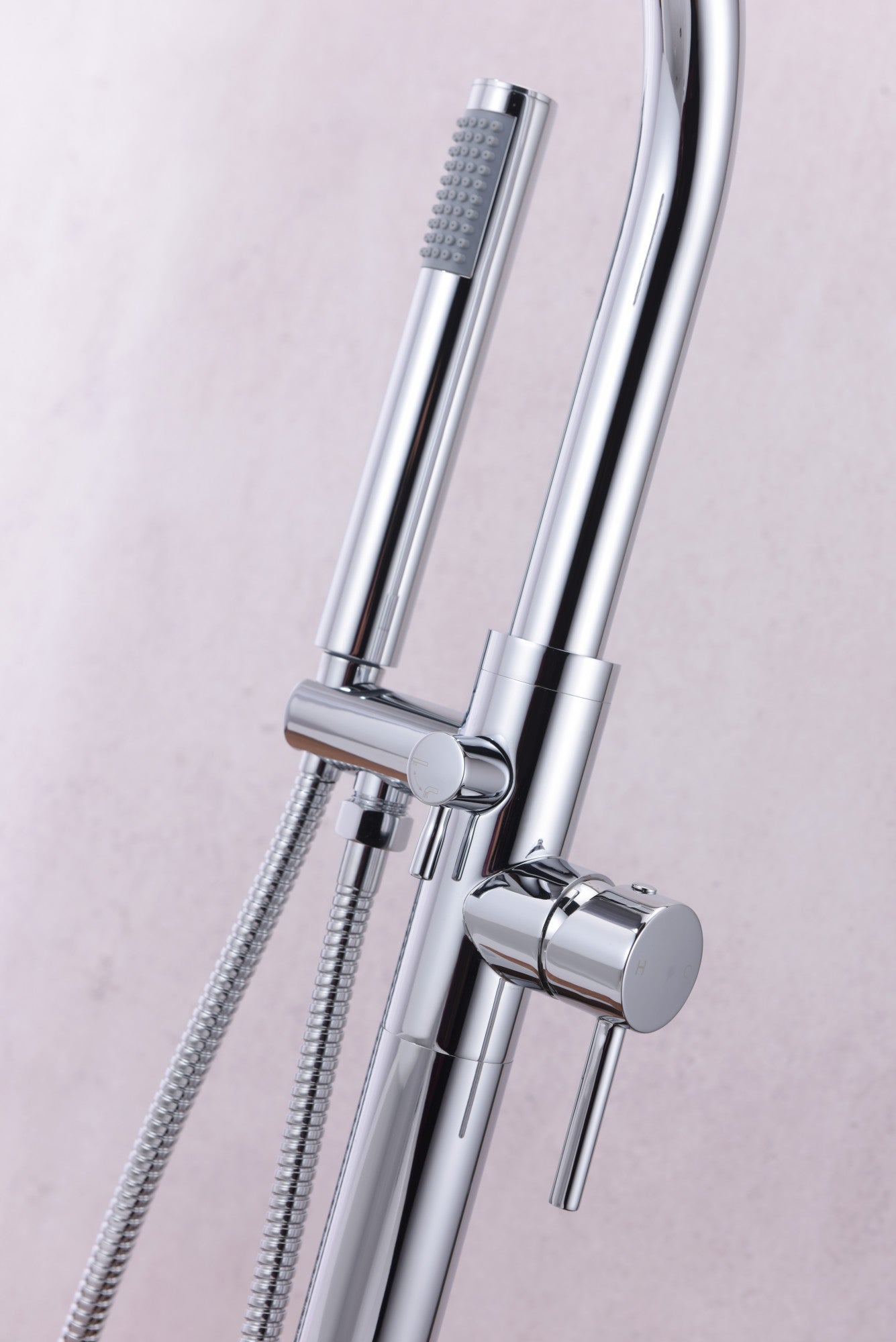 The ANZZI Coral Series 2-handle freestanding claw foot tub faucet with hand shower will add a classic appeal to any freestanding bathtub. Elegantly featuring a swan-like high arched spout, a single handle water lever (controls water temperature and flow), a diverter, and pull out hand sprayer. This floor mounted tub faucet is crafted for durability and is RHINO ALLOY certified.