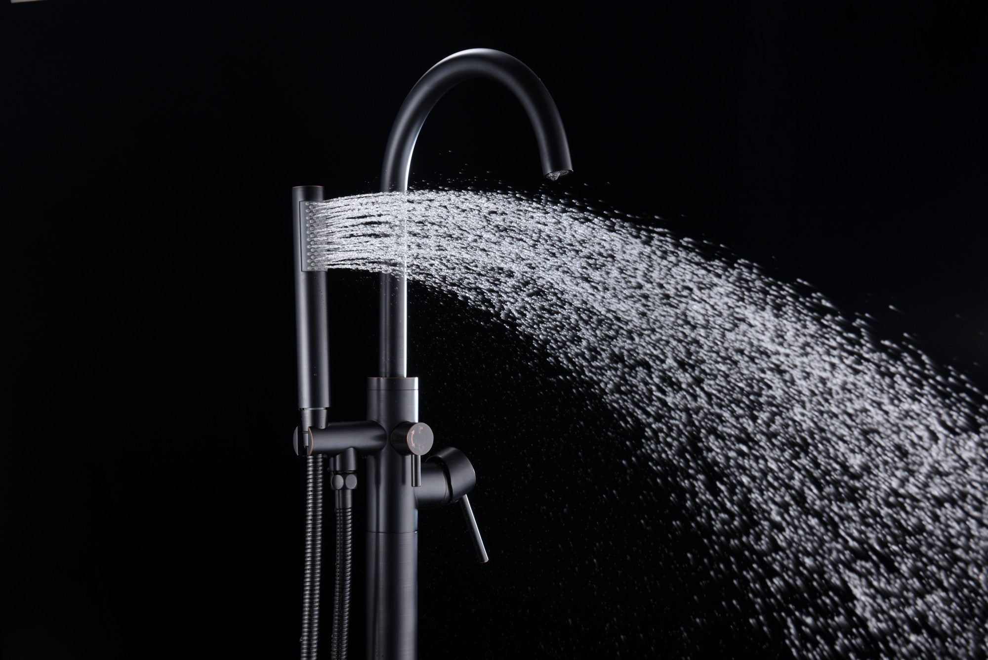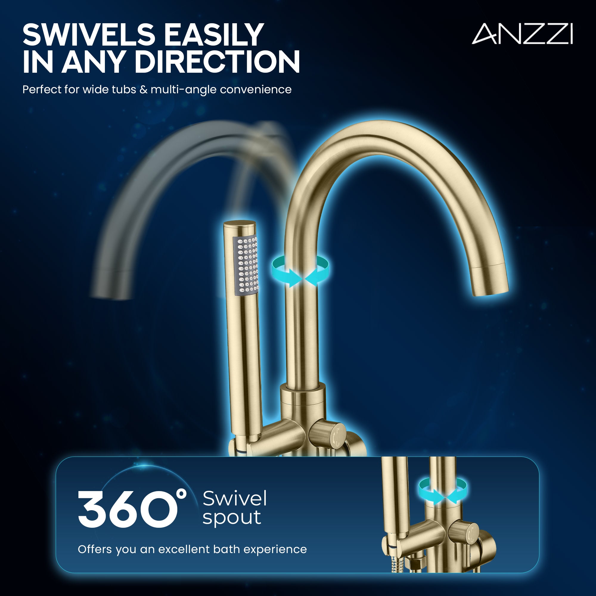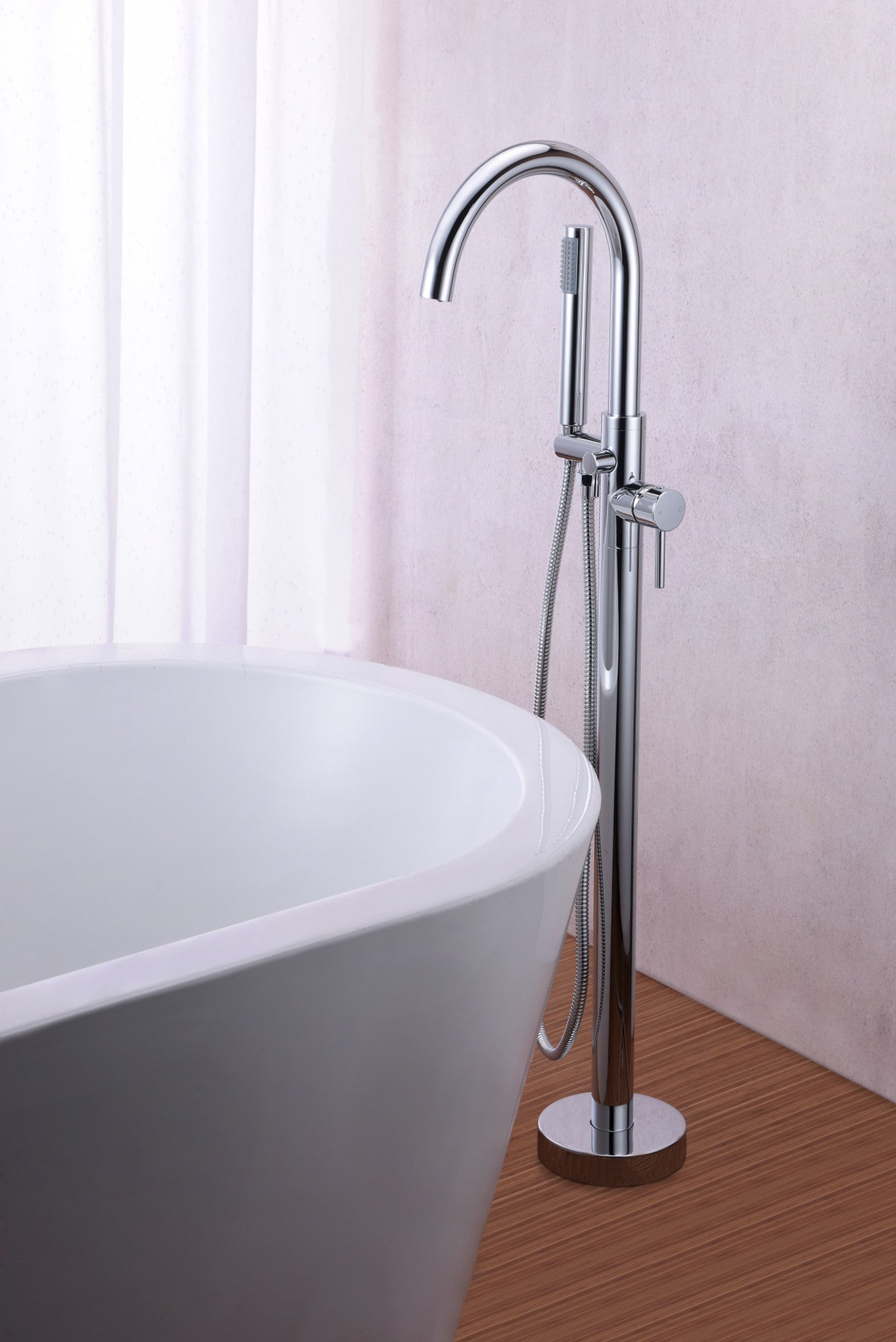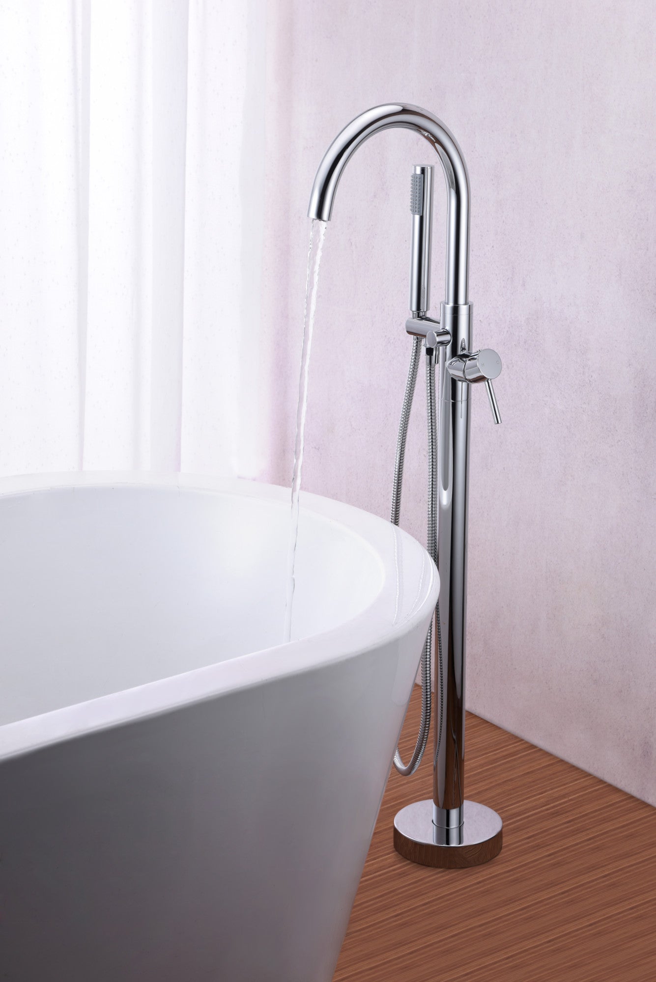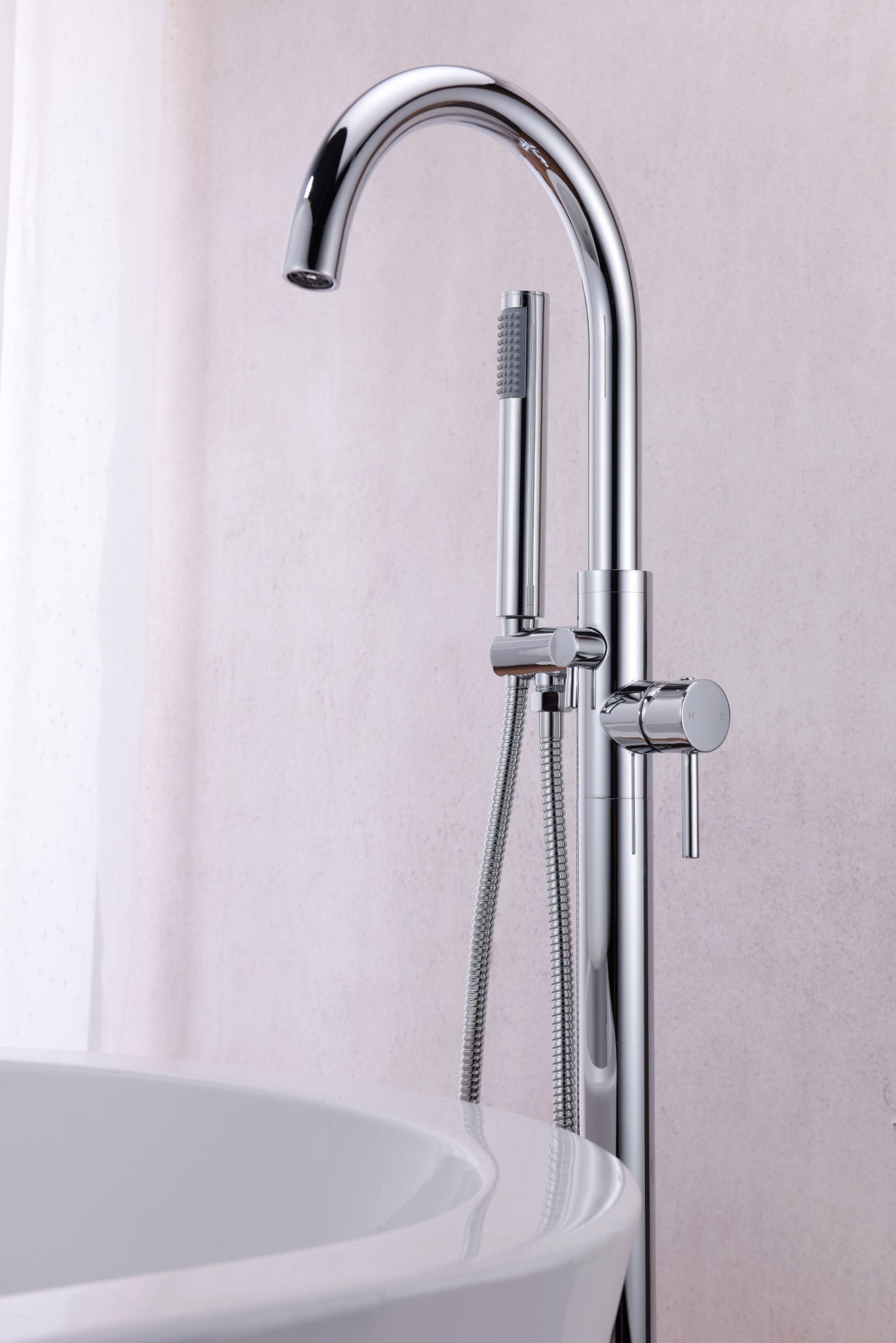 The ANZZI Coral Series 2-handle freestanding claw foot tub faucet with hand shower will add a classic appeal to any freestanding bathtub. Elegantly featuring a swan-like high arched spout, a single handle water lever (controls water temperature and flow), a diverter, and pull out hand sprayer. This floor mounted tub faucet is crafted for durability and is RHINO ALLOY certified.