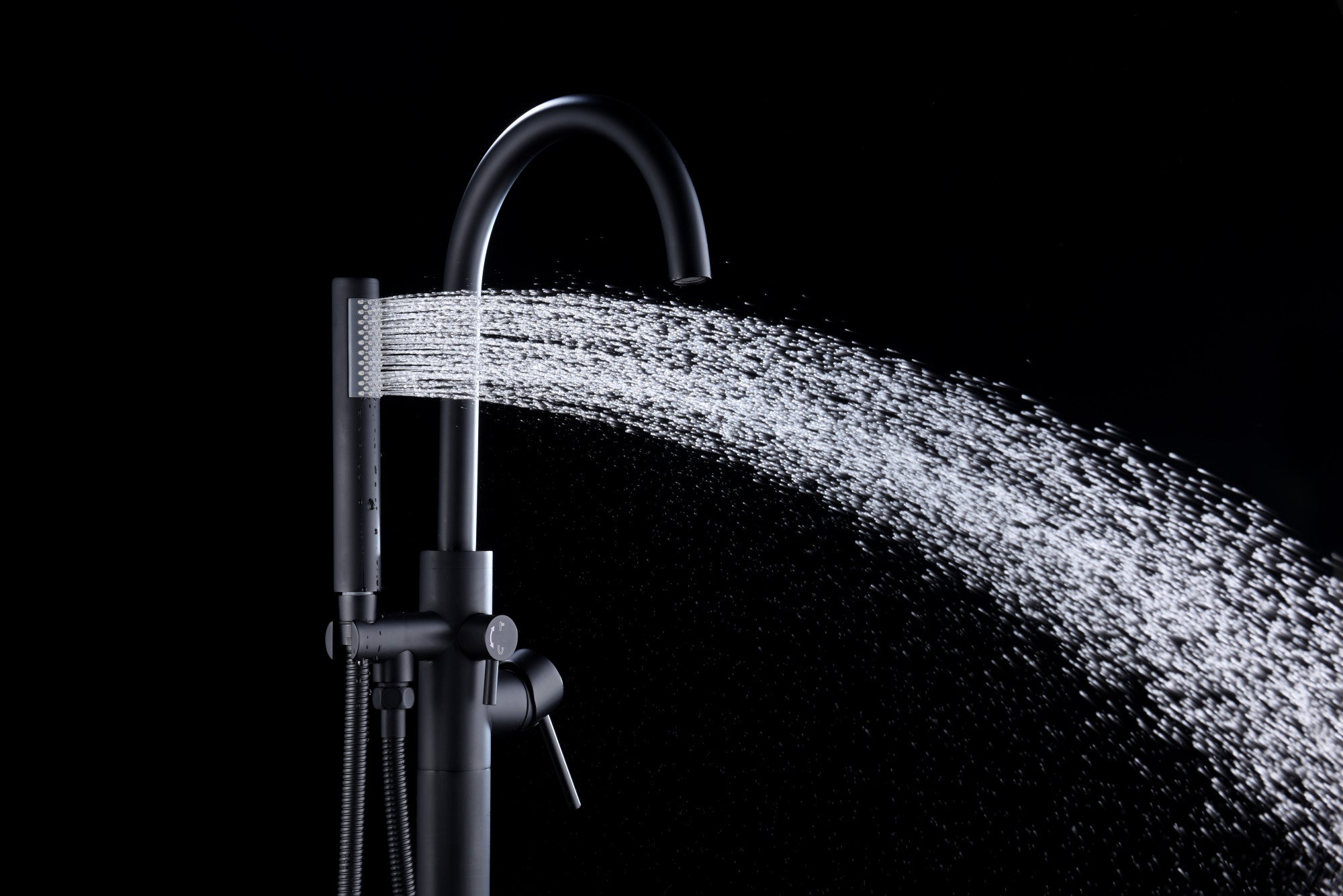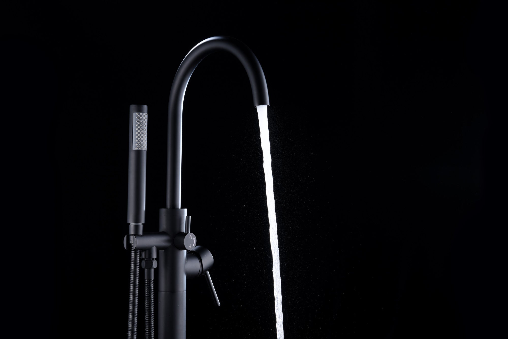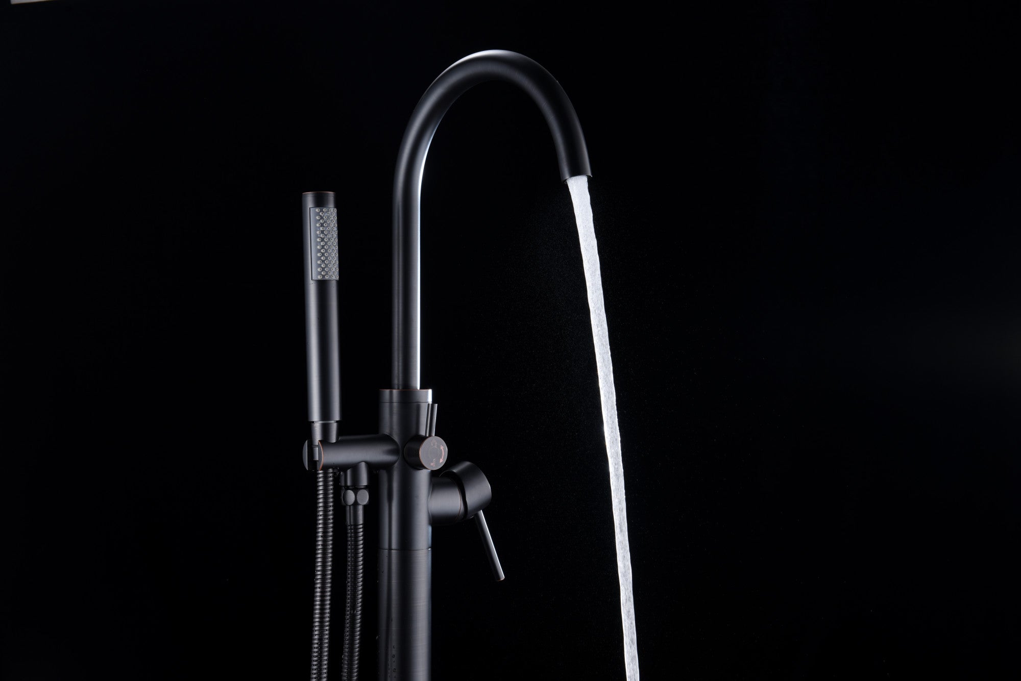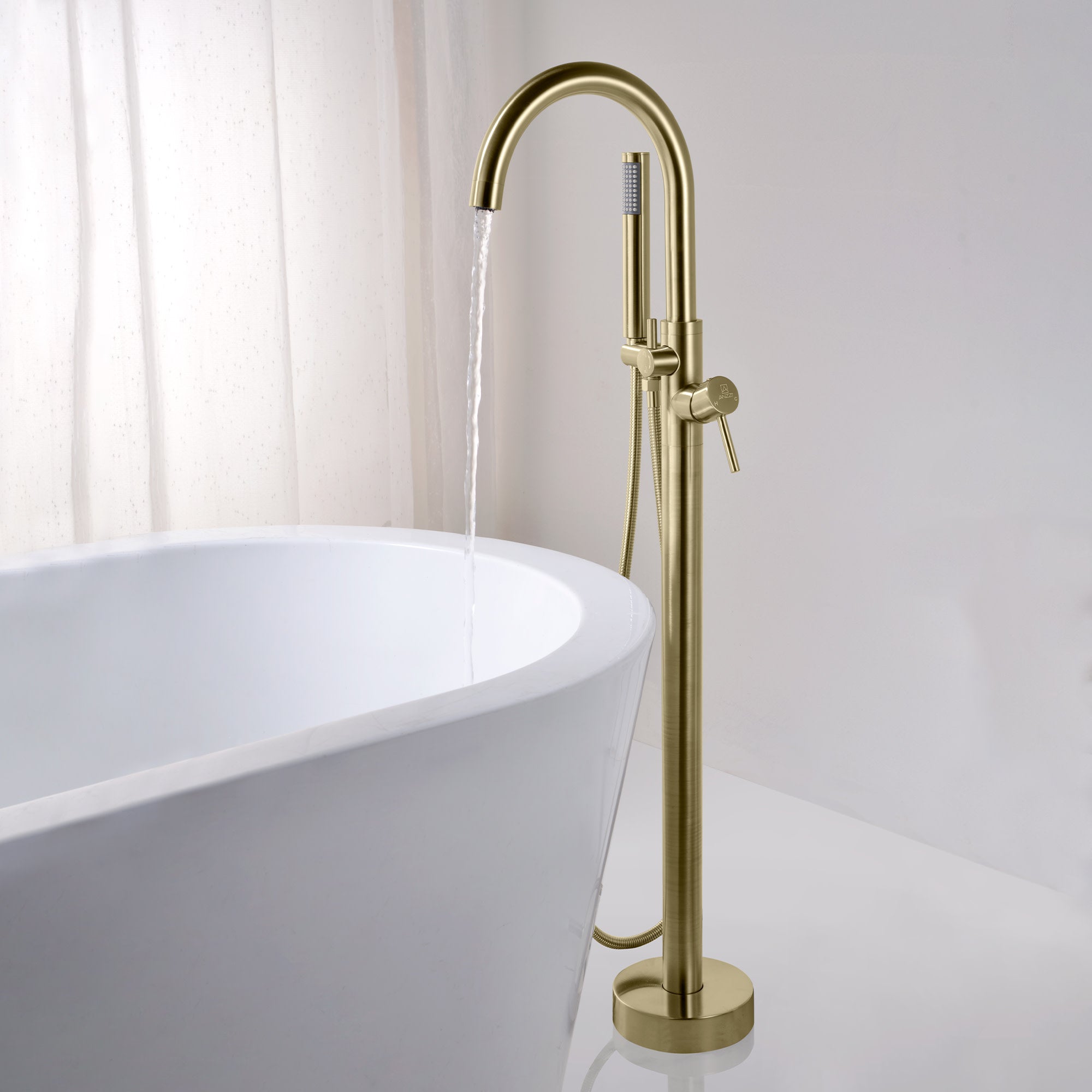 The ANZZI Coral Series 2-handle freestanding claw foot tub faucet with hand shower will add a classic appeal to any freestanding bathtub. Elegantly featuring a swan-like high arched spout, a single handle water lever (controls water temperature and flow), a diverter, and pull out hand sprayer. This floor mounted tub faucet is crafted for durability and is RHINO ALLOY certified.