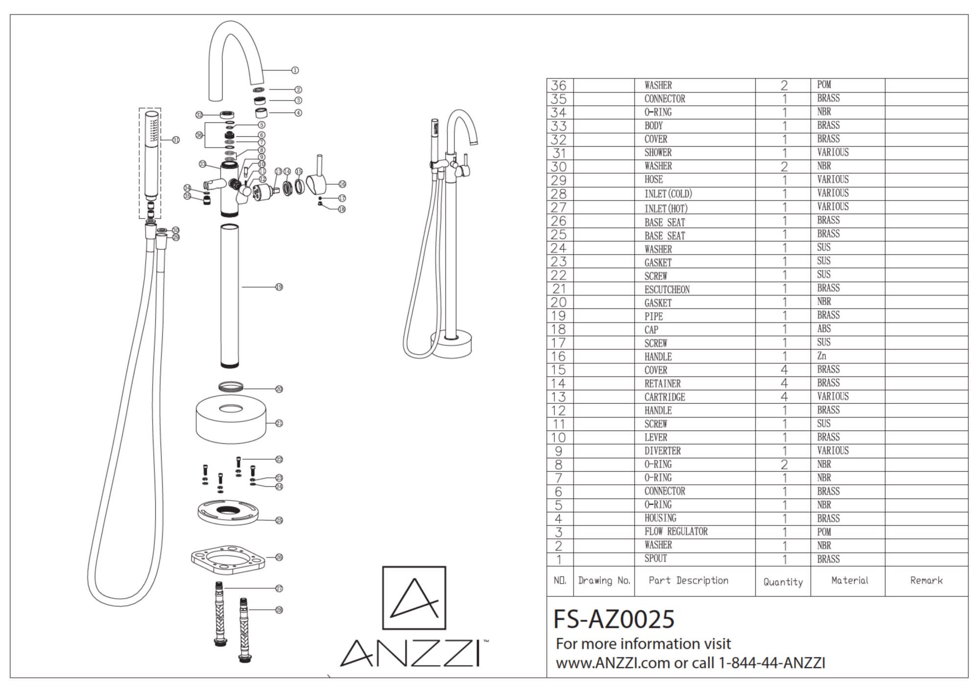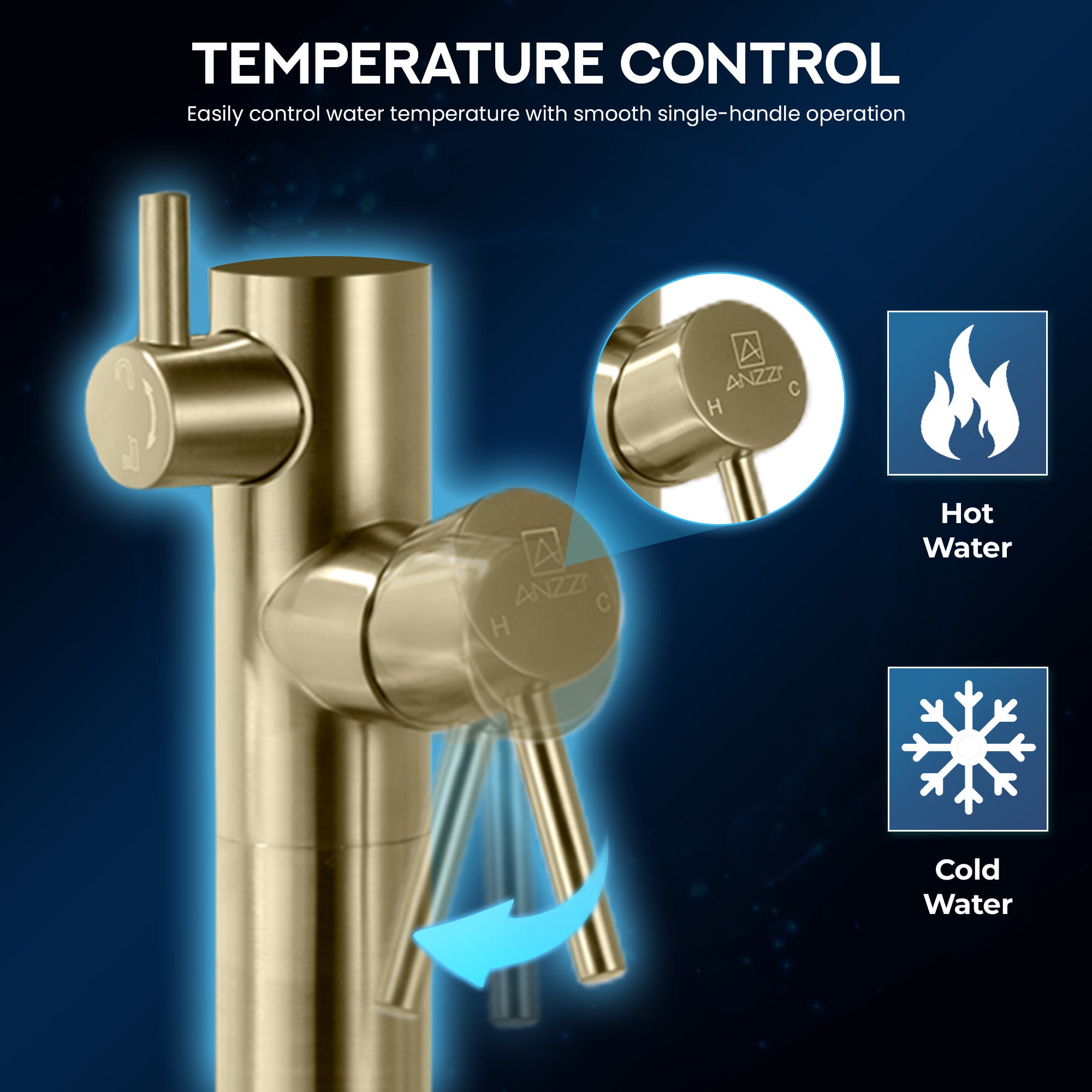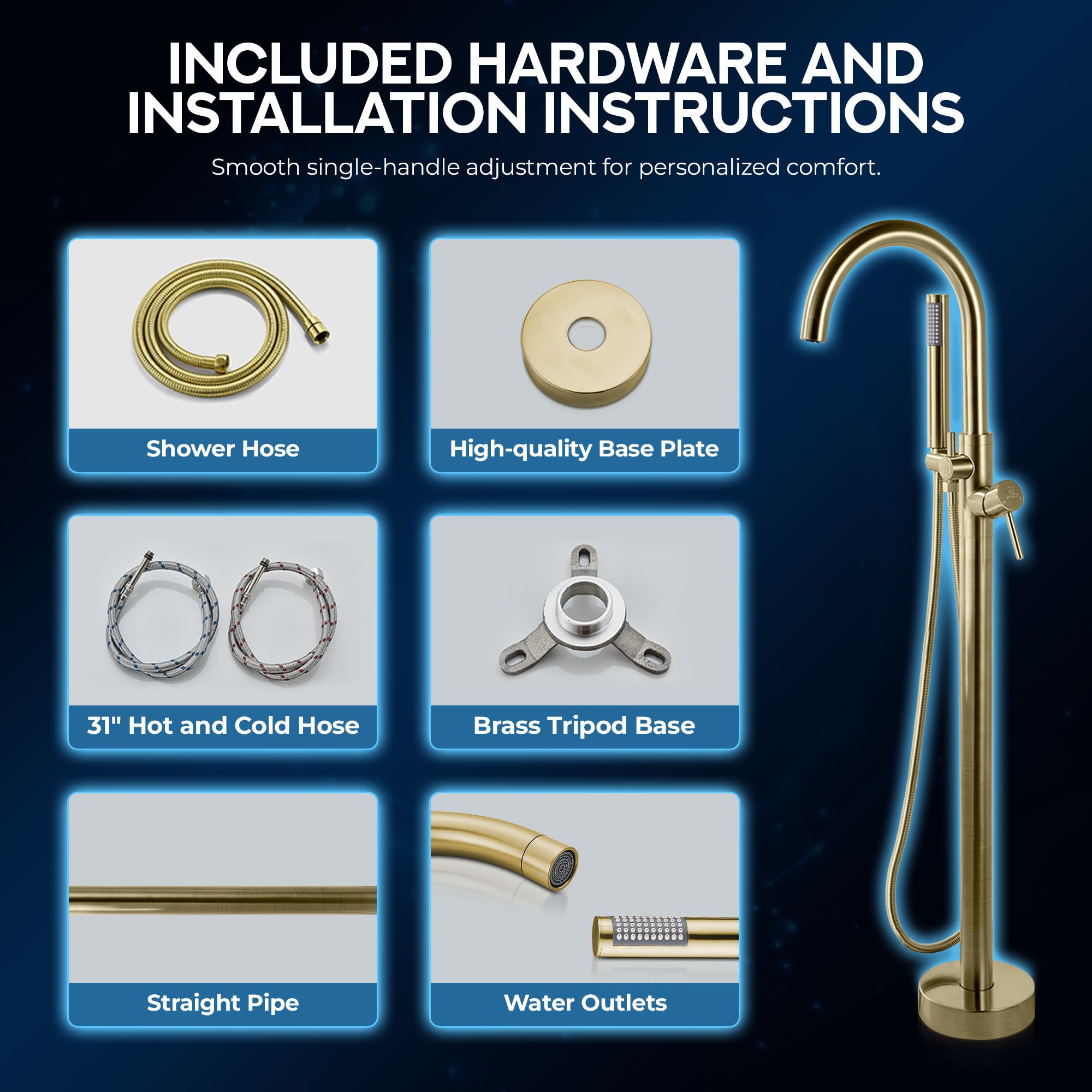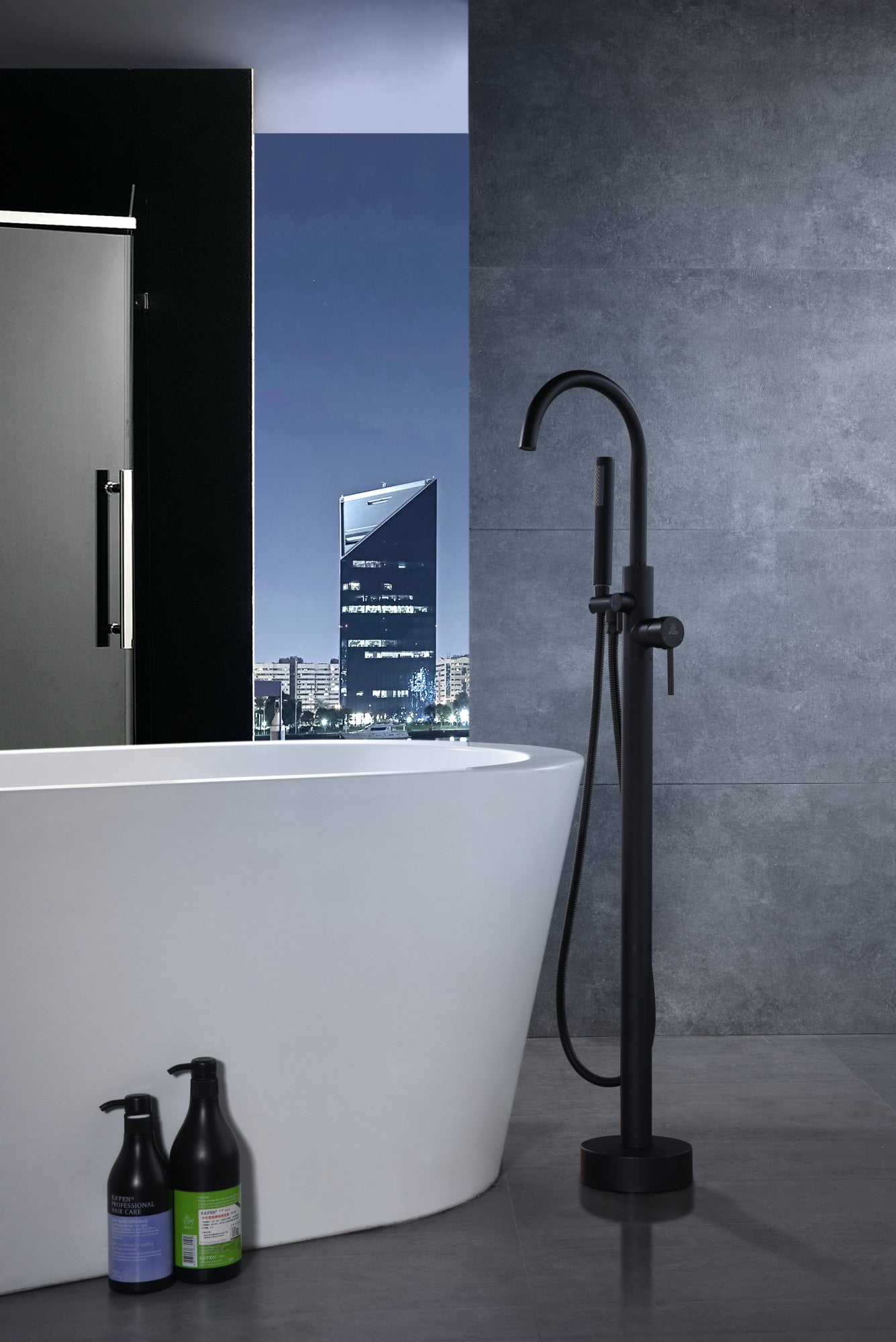 The ANZZI Coral Series 2-handle freestanding claw foot tub faucet with hand shower will add a classic appeal to any freestanding bathtub. Elegantly featuring a swan-like high arched spout, a single handle water lever (controls water temperature and flow), a diverter, and pull out hand sprayer. This floor mounted tub faucet is crafted for durability and is RHINO ALLOY certified.