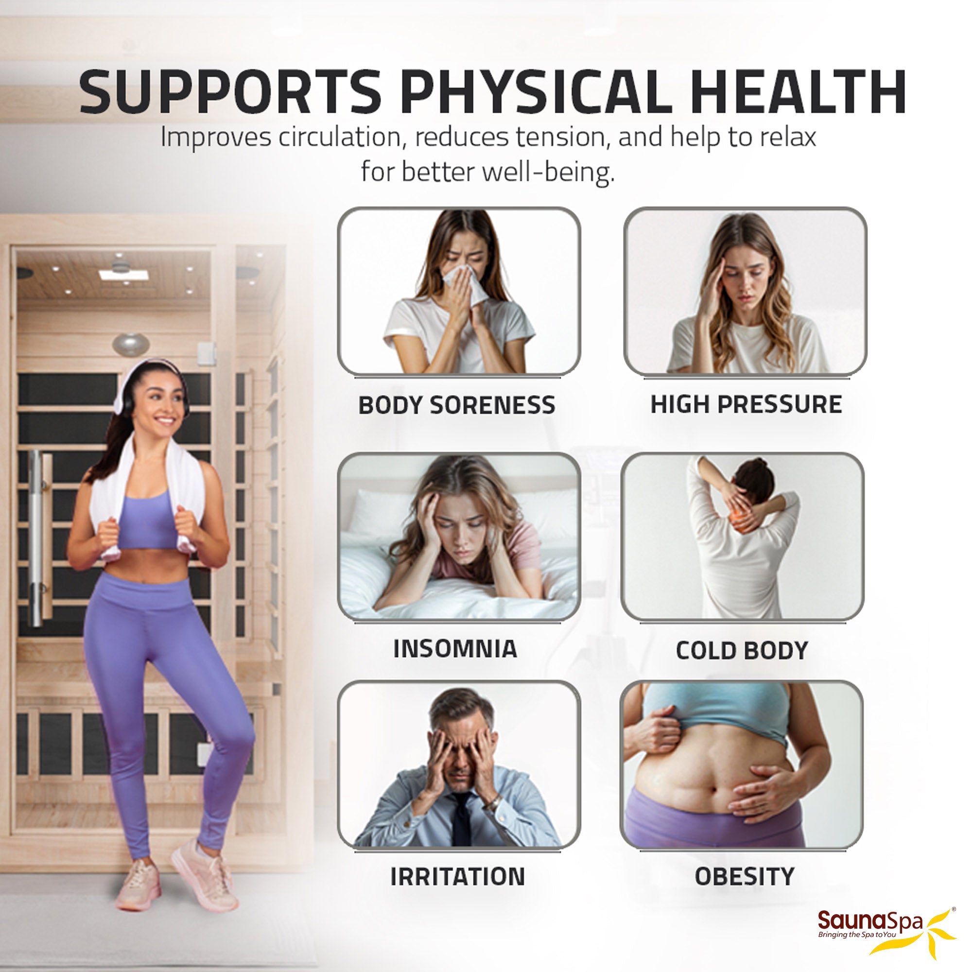 COMFORTING DRY HEAT FROM LOW EMF, CARBON FAR INFRARED HEATING PANEL — our sauna uses the latest infrared technology to generate a comfortable dry heat that soothes and relaxes, while relieving fatigue and promoting full-body well-being