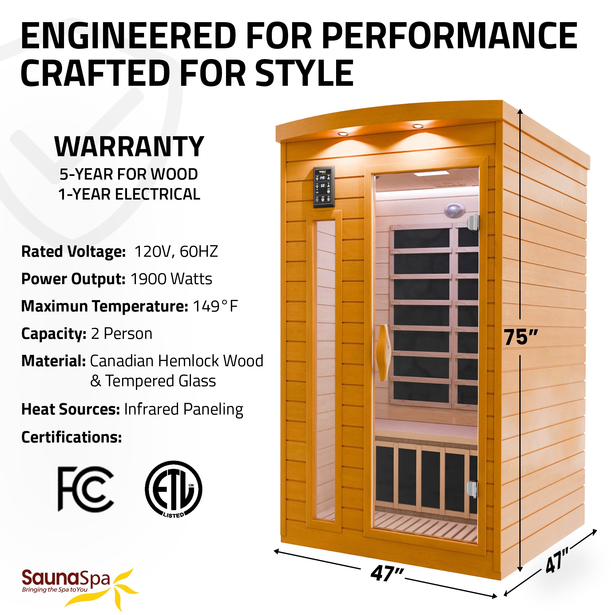 SAFETY CERTIFIED: ETL and FCC certified to meet safety standards for reliable indoor sauna use.