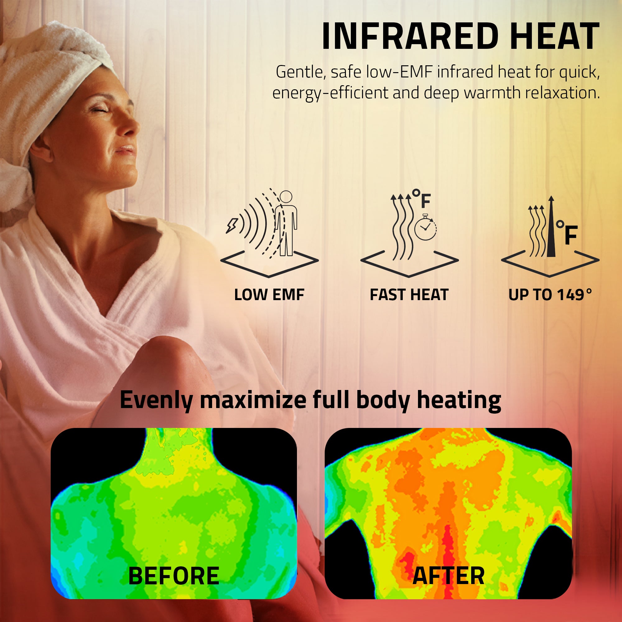 LOW-EMF FAR-INFRARED HEATING: The 5pc Far-infrared heating panels deliver gentle and even heat for soothe muscles, reduce tension, and full-body comfort.