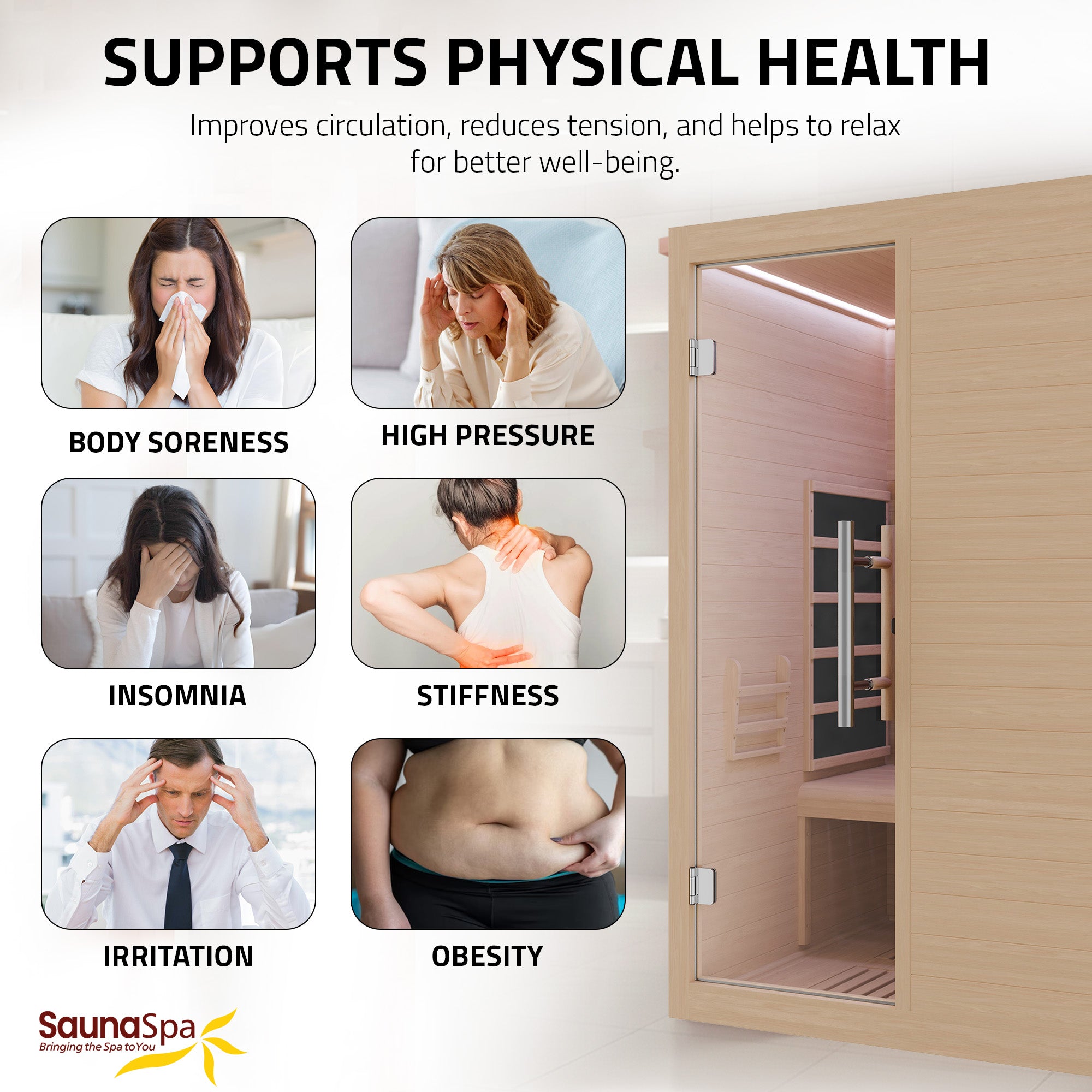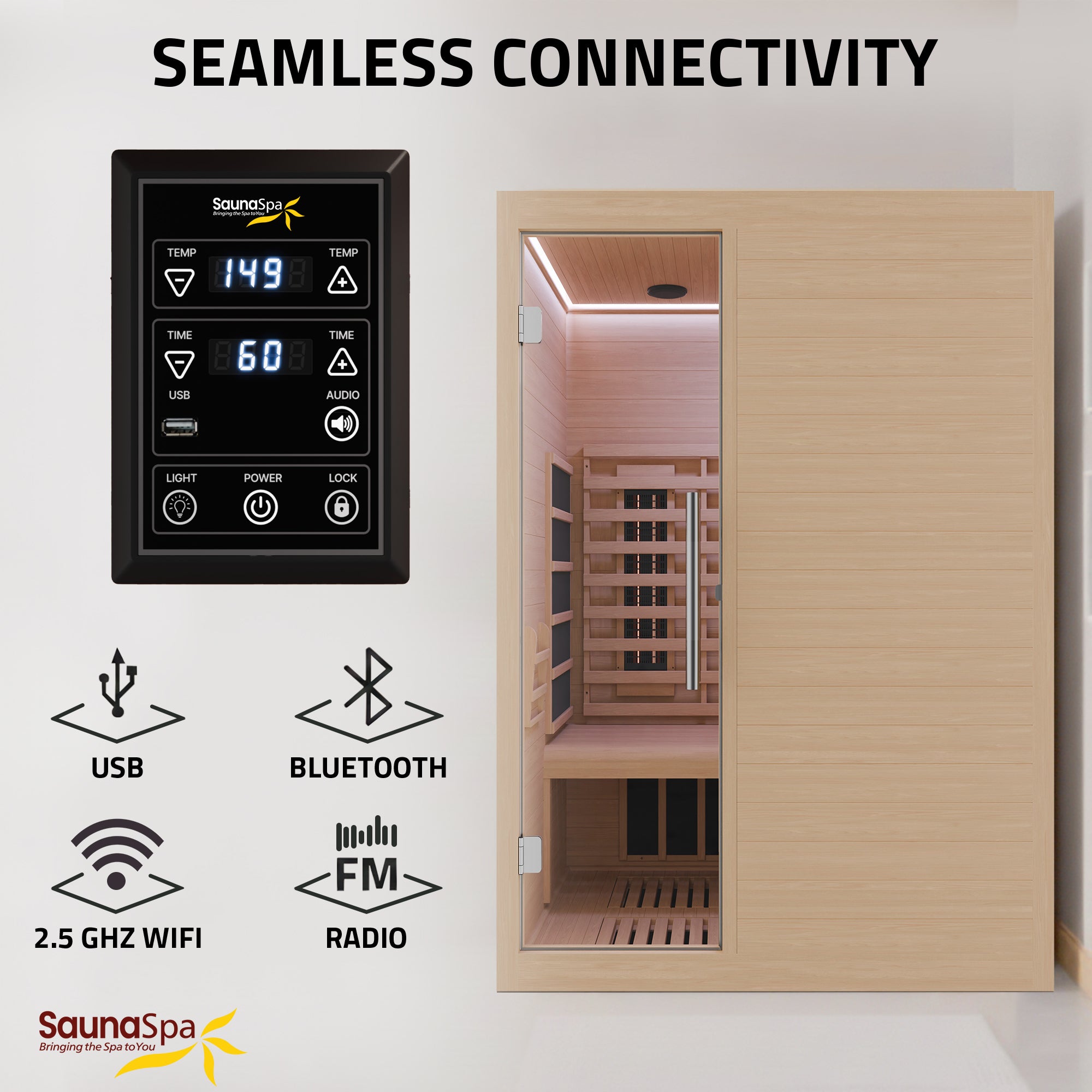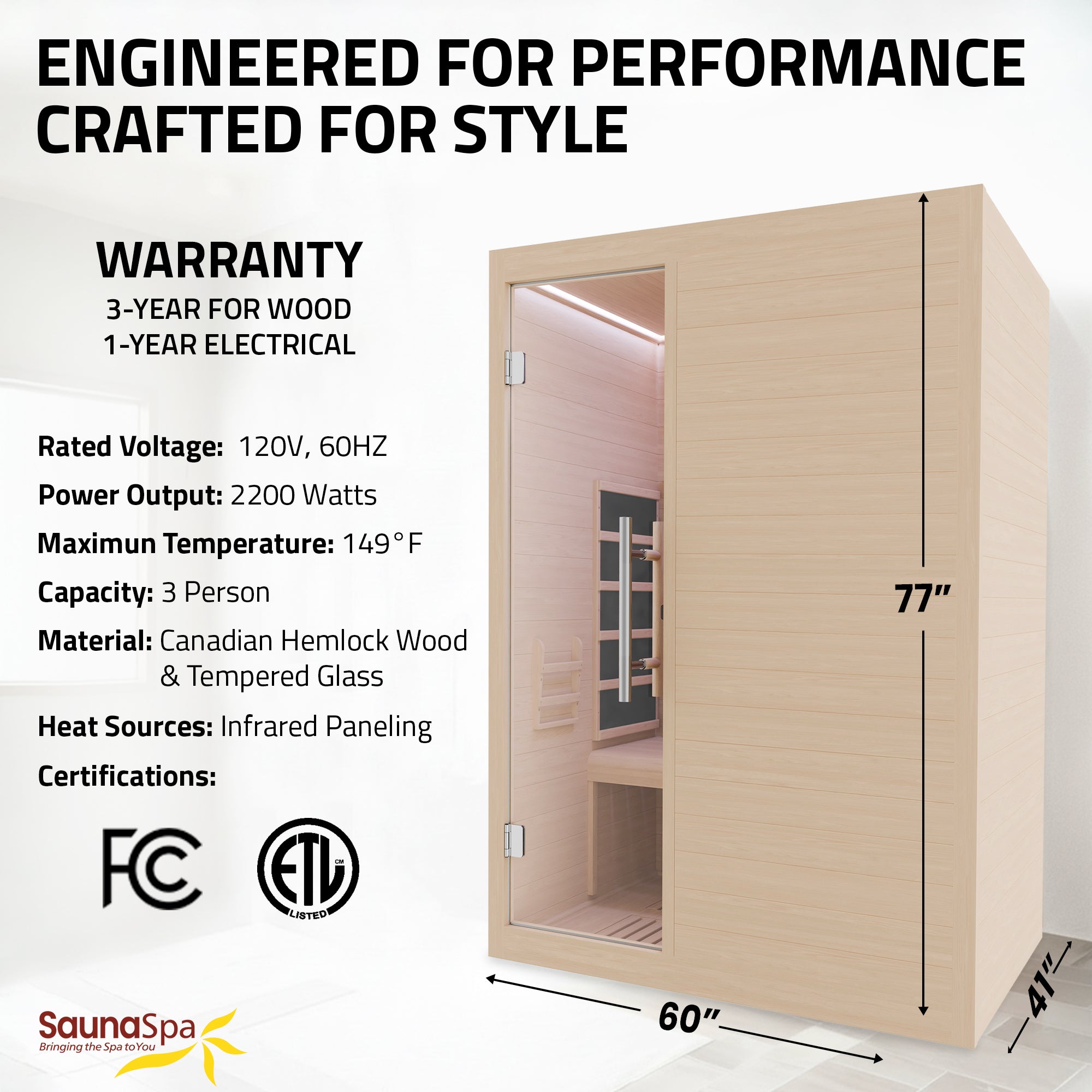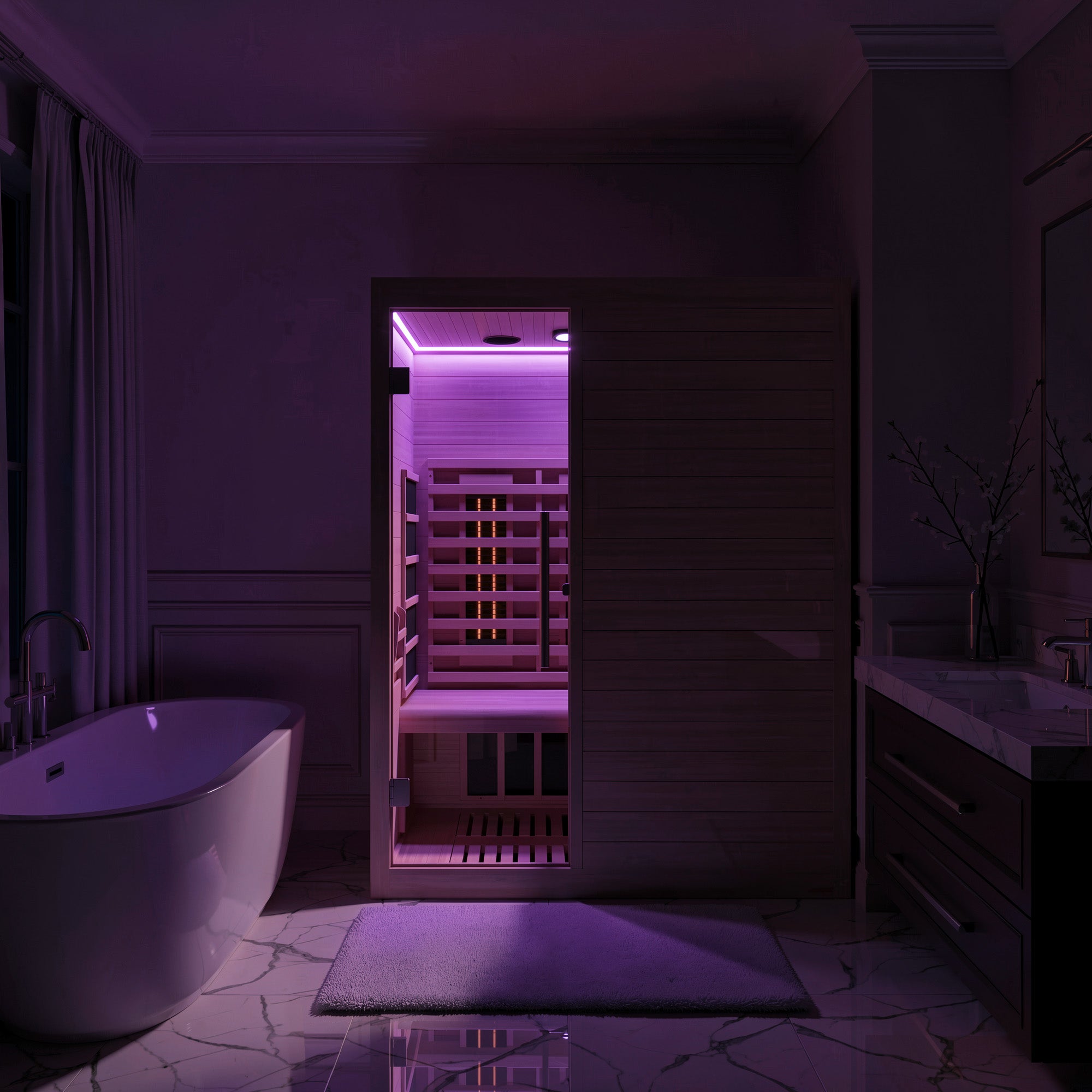 Create a personal wellness retreat at home with this 3-person infrared sauna. Built from durable Canadian hemlock wood, it features low EMF infrared heating panels, red light therapy heaters, and a floor heater for consistent warmth throughout the cabin. Smart WiFi connectivity allows convenient control from your smartphone, while Bluetooth speakers enhance relaxation with music. Designed for indoor use, the sauna also includes chromatherapy lighting, an oxygen ionizer, and ventilation to create a comfortable and refreshing environment for daily recovery and relaxation.