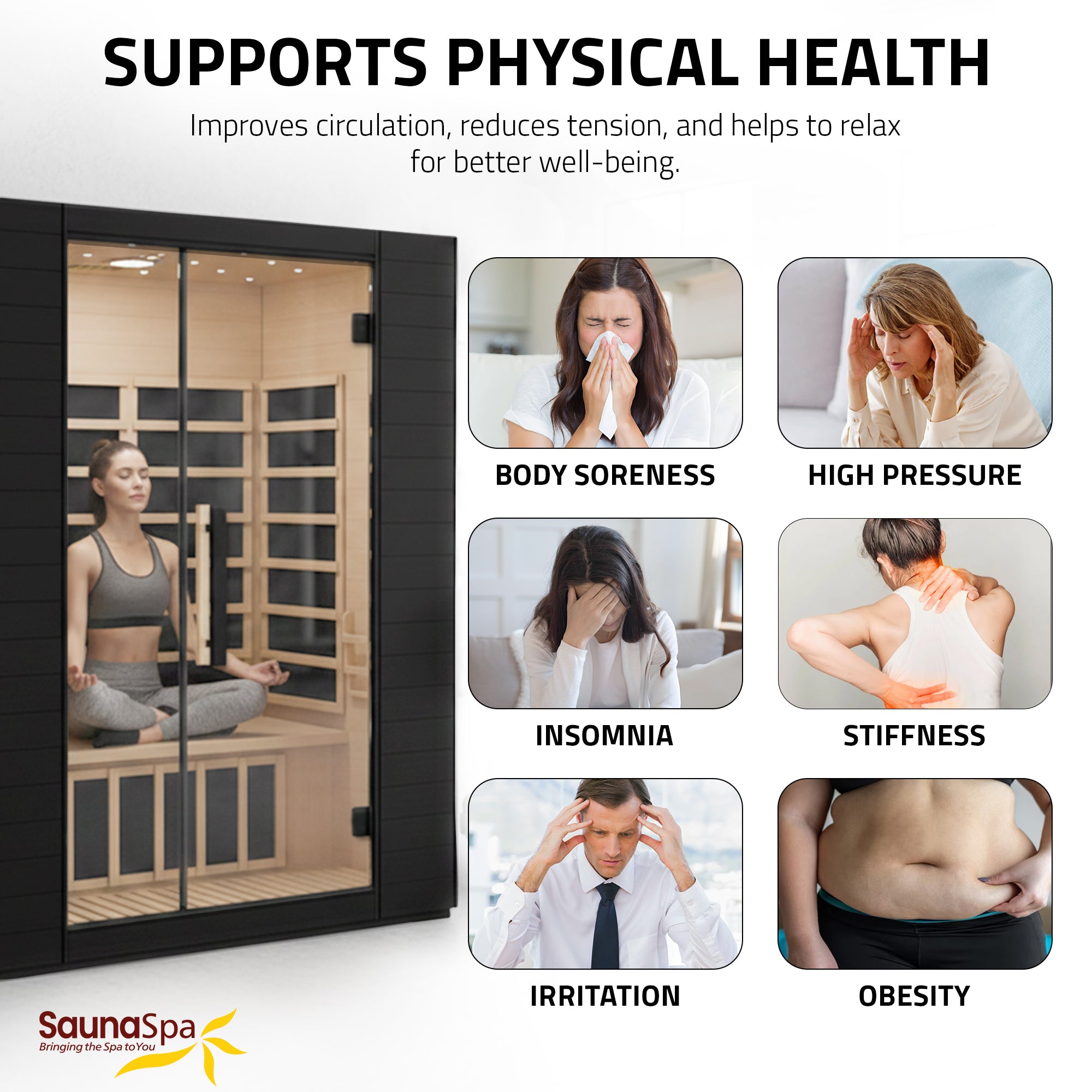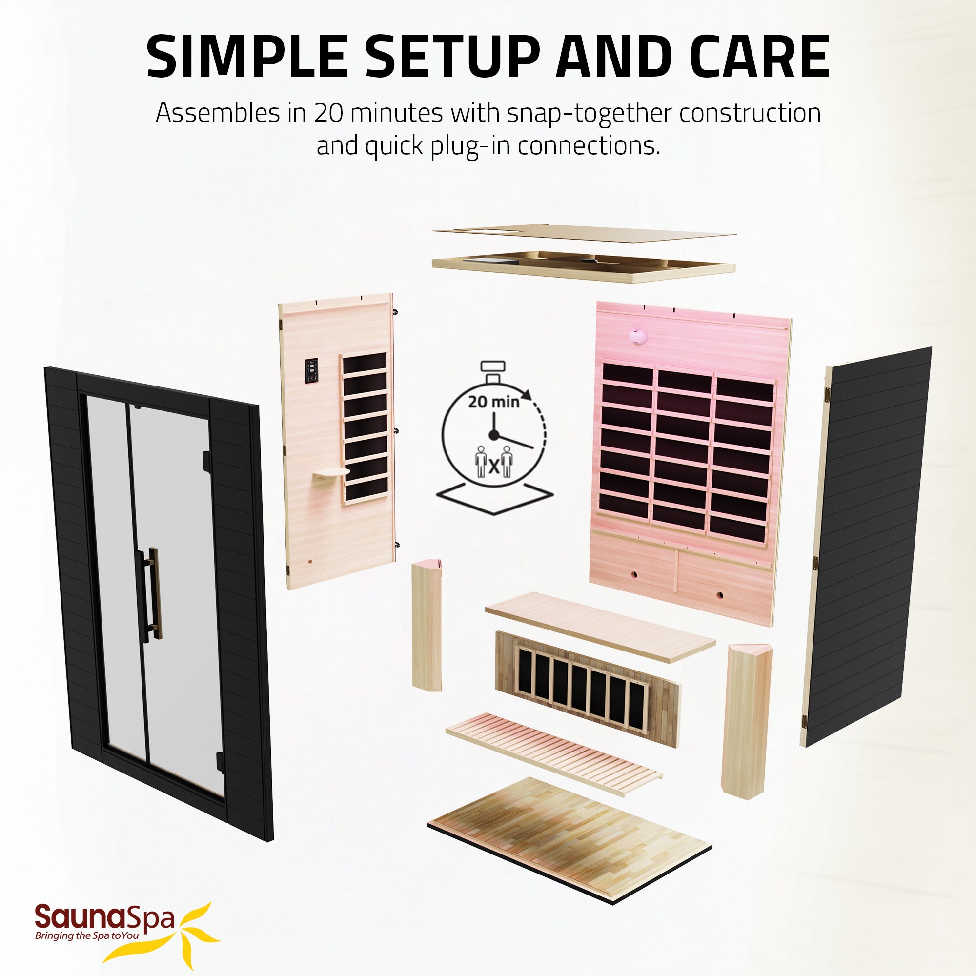 3-PERSON SQUARE SAUNA: SaunaSpa 3-person square infrared sauna for indoor and personal relaxation.