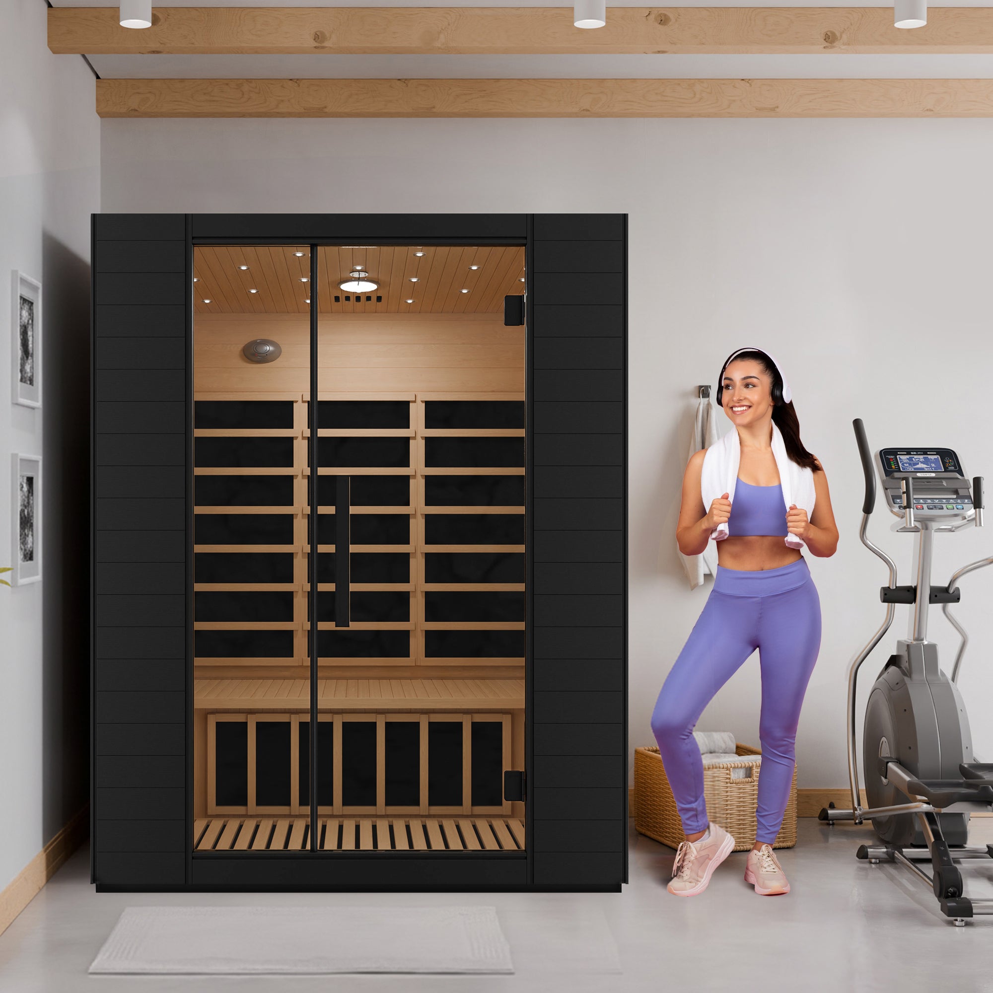 Create space for shared recovery with this 3-Person infrared sauna. Crafted from natural wood and powered by high-performance infrared panels, it delivers gentle, even heat ideal for daily wellness routines. Star-style sauna lights add a tranquil glow that enhances relaxation. Designed for indoor use, it brings the ambiance and benefits of a backyard sauna into your home.